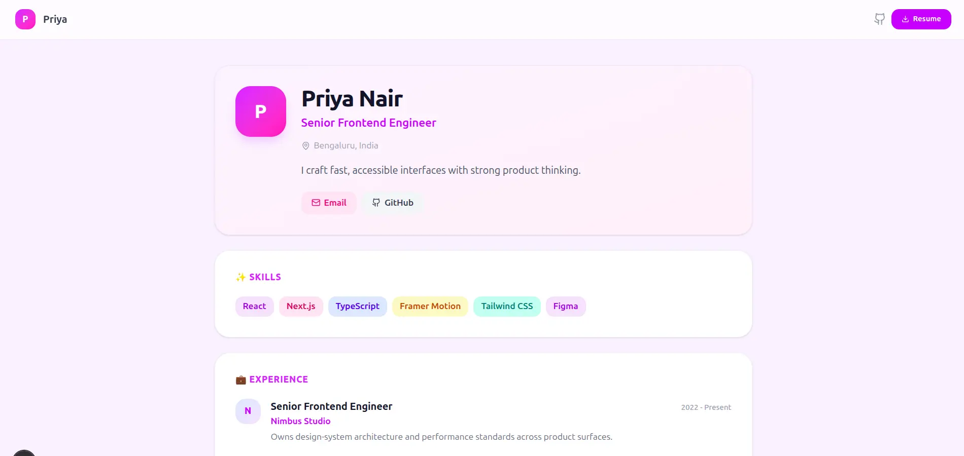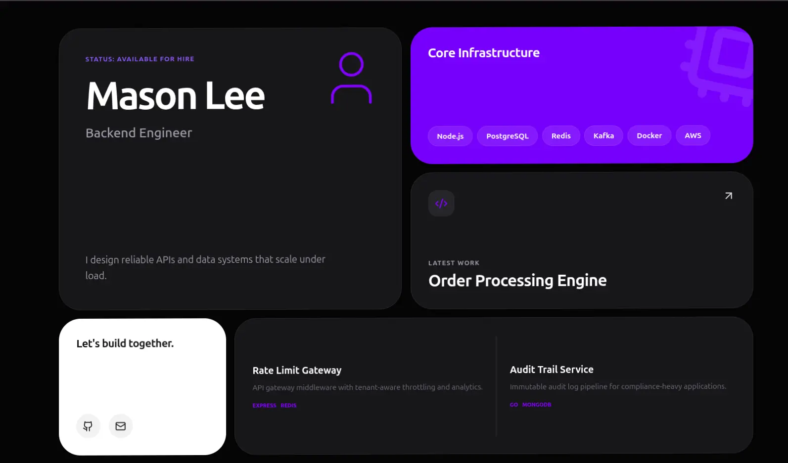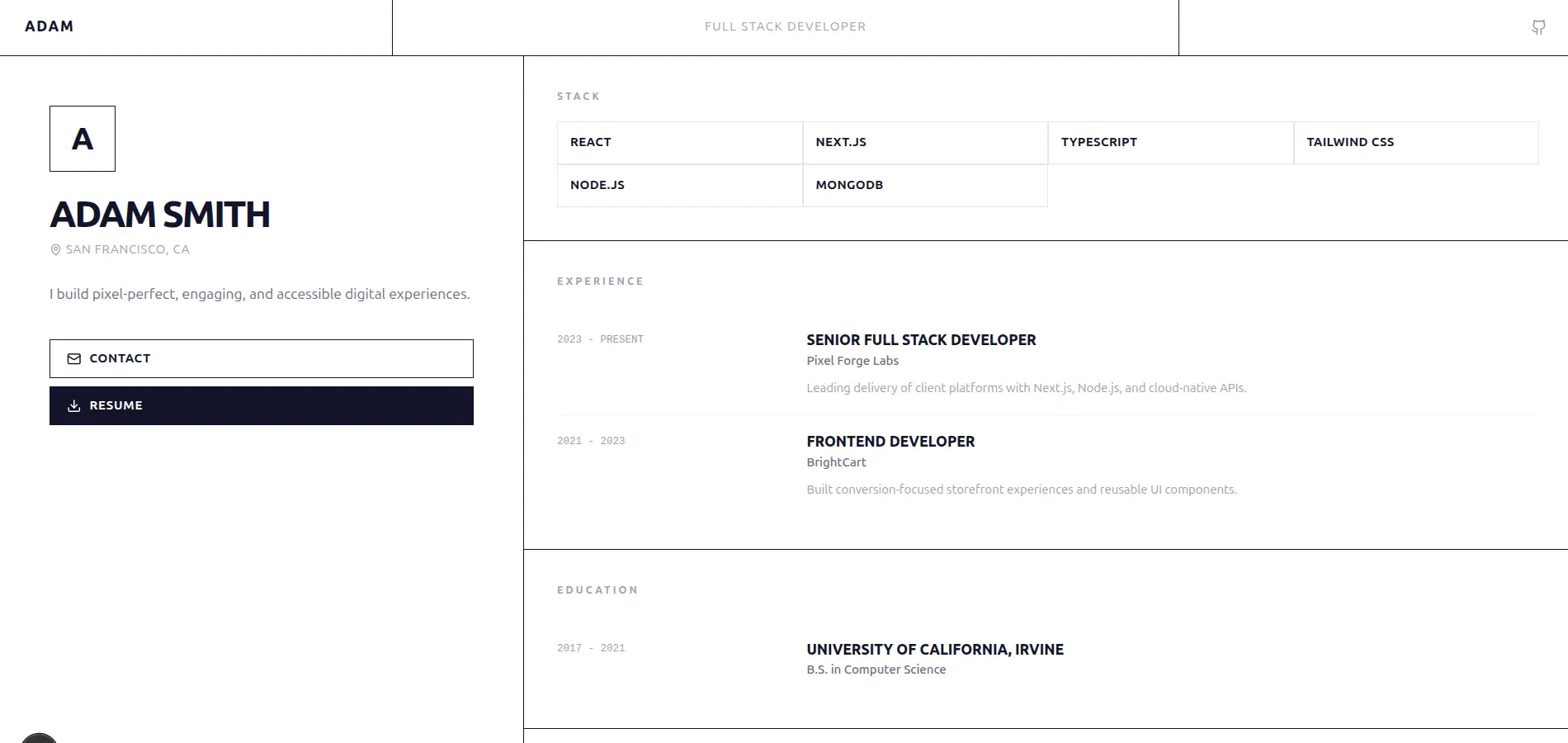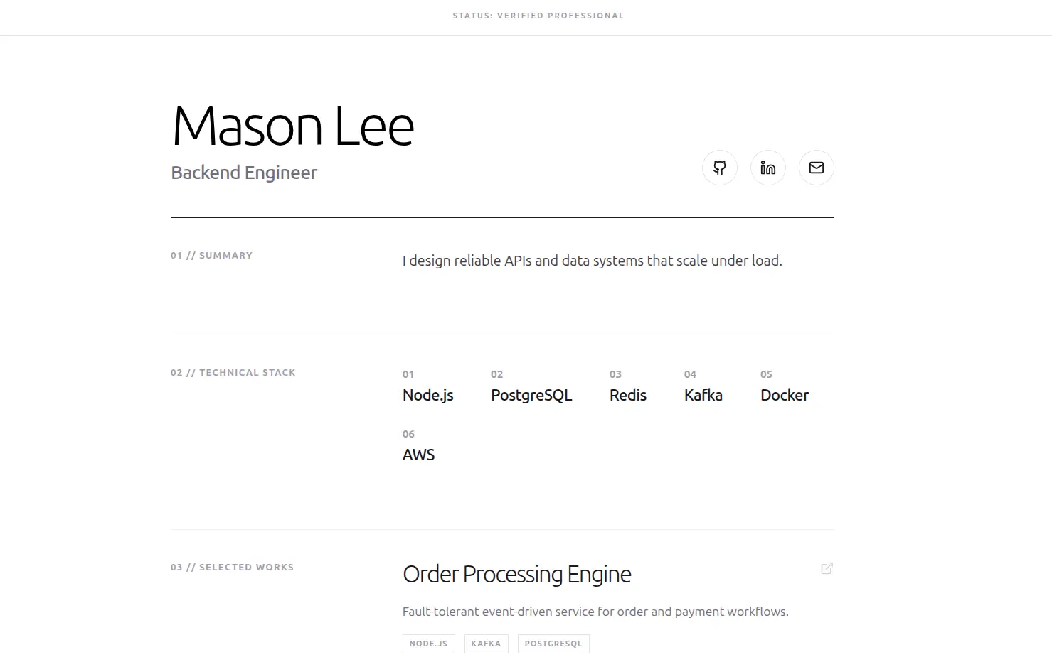 Cinematic sticky-parallax. Sections wipe over each other as you scroll.