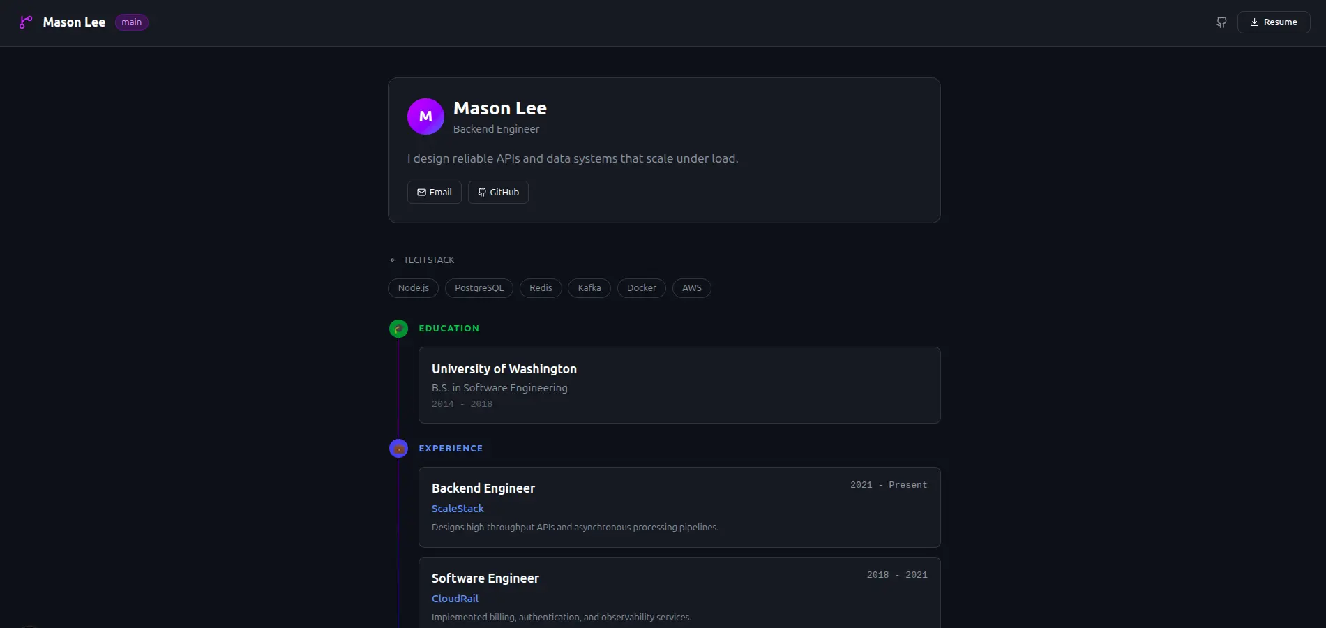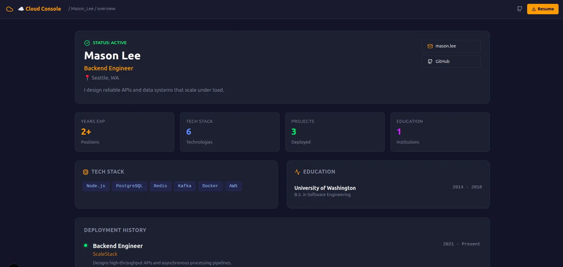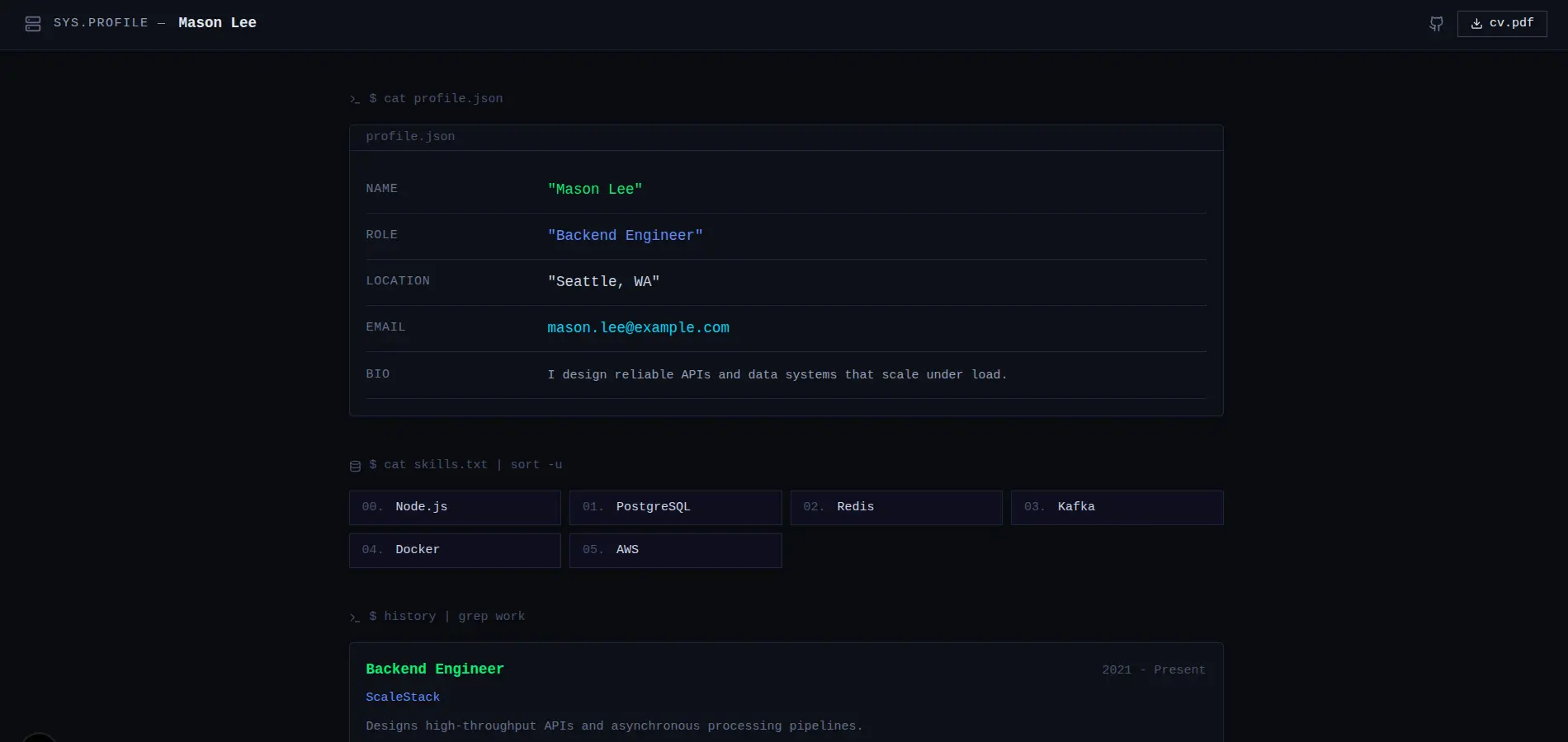 Cinematic sticky-parallax. Sections wipe over each other as you scroll.