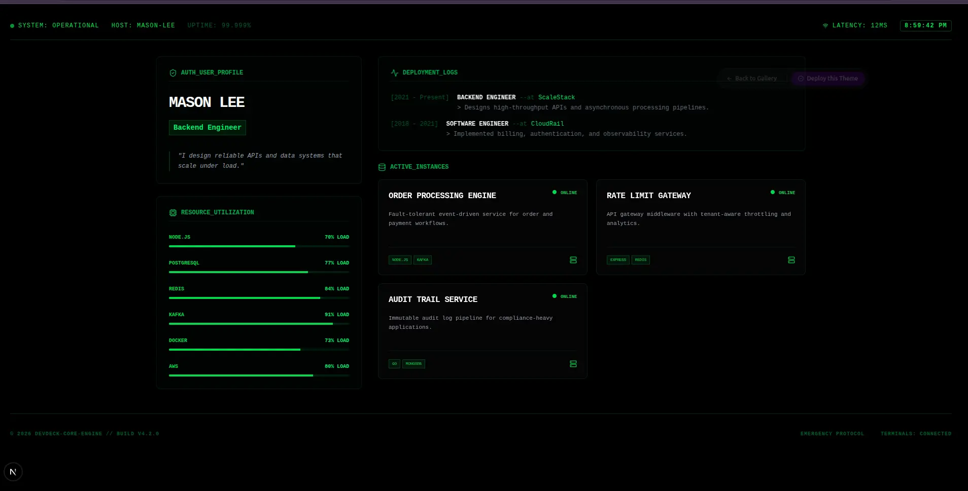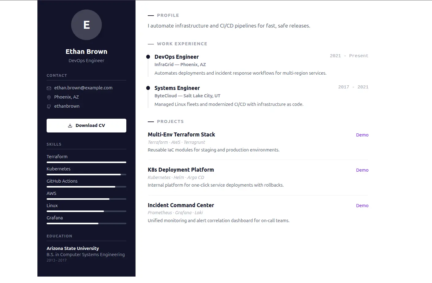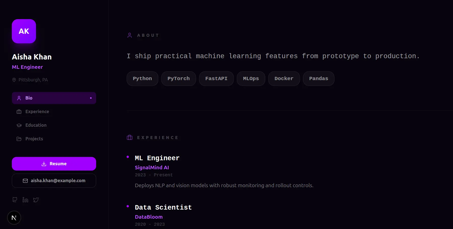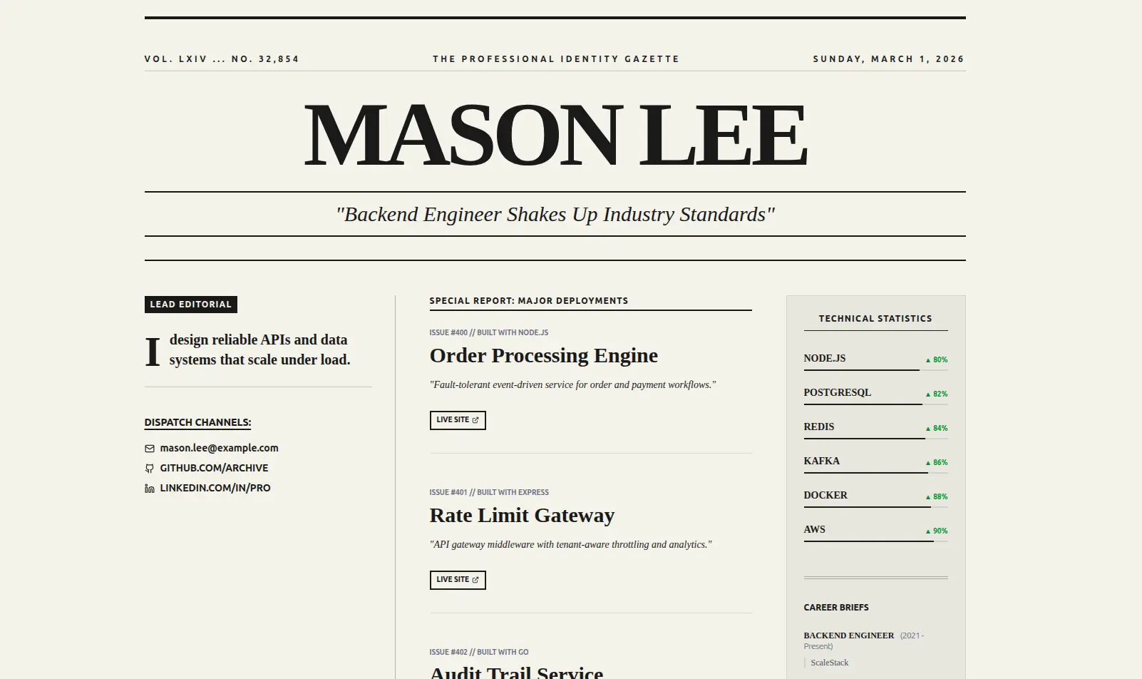 Cinematic sticky-parallax. Sections wipe over each other as you scroll.